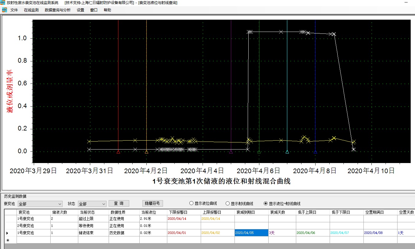 監測軟件自動計算衰變池從開始注液到排放結束的七個不同時期,并分別給出警示